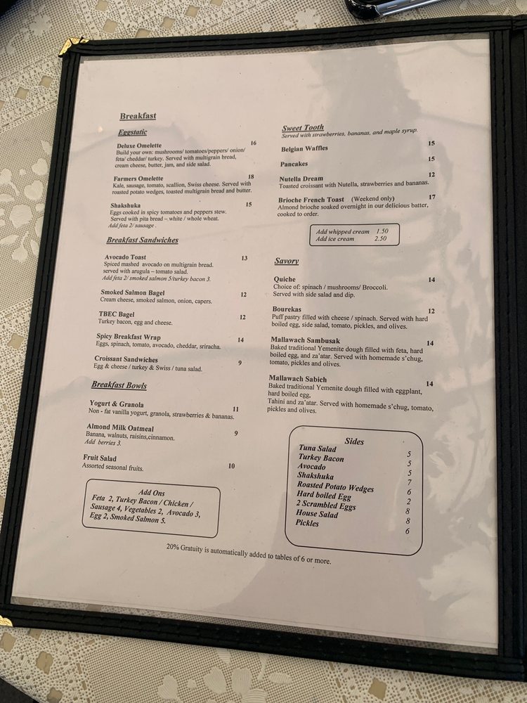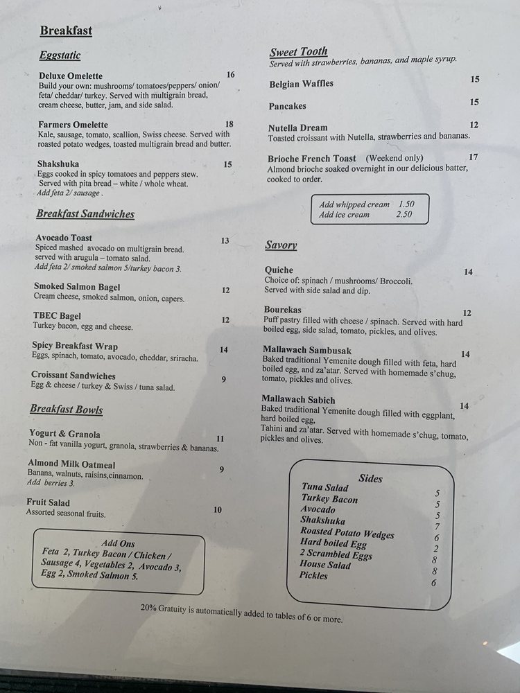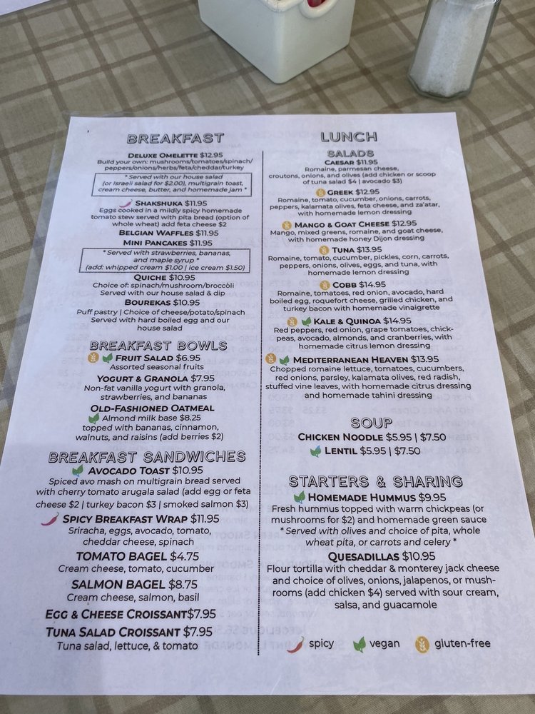 - Breakfast All Day: Enjoy the Deluxe Omelette or spicy Shakshuka, each crafted to perfection, accompanied by multigrain toast or freshly baked pita.